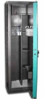 Сейф оружейный производства Украина, предназначен для хранения оружия, боеприпасов и охотничьей амуниции. Такой сейф защитит содержимое от несанкционированного доступа и обеспечит защиту от взлома. Данная модель имеет механический кодовый замок "La Gard" (США), что освобождает хозяина от постоянной забо¬ты о ключе. Конструктивно изготавливается таким образом: корпус сварной - одностенный, дверь - сварная, из двух листов стали установленных на расстоянии, между которыми размещается замок. Внутри дверь полая. Сейф оборудован замком "La Gard" (США): тип замка: кодовый (механический); код сменный - одно двузначное число либо три двузначных числа; количество ригелей - 4; диаметр ригелей - 26 мм; направление запирания ригелей - трёхстороннее: два горизонтально слева, один вертикально вверх, один вертикально вниз. Для удобства пользования при открытии и закрытии сейфа, на внешней стороне двери установлен поворотный штурвал (ручка). Замок фиксирует механизм запирания (замок открыт/замок закрыт), а штурвал приводит в движение ригельную систему (дверь отрыта/дверь закрыта). Цвет штурвала – чёрный. Внутри сейфа находится запираемое отделение (трейзер) для хранения боеприпасов. Толщина передней панели трейзера от 2 мм. Трейзер оснащён замком "EurolockS" (Германия) или "Fort" (Франция): тип замка: почтовый; в комплекте два ключа; длина ключа: 30 - 40 мм; месторасположение: внутри в верхней части сейфа. Замок слева, петли справа. Держатели для стволов выполнены в виде подпружиненных зажимов с резиновыми накладками. На двери под креплением для пистолета расположен карман Сейф оборудован тремя внутренними не съёмными полочками. Стальные внутренние петли позволяют открыть двери сейфа на угол 90 градусов. Сейф покрашен молотковой эмалью или порошковой краской. По желанию возможна замена или установка дополнительного ключевого замка. Во избежание кражи сейфа с места эксплуатации предусмотрена возможность его крепления (одно отверстие) анкерным болтом к полу. Предоставляем услуги по доставке, установке и креплению сейфов. Осуществляем гарантийное и послегарантийное обслуживание сейфов.