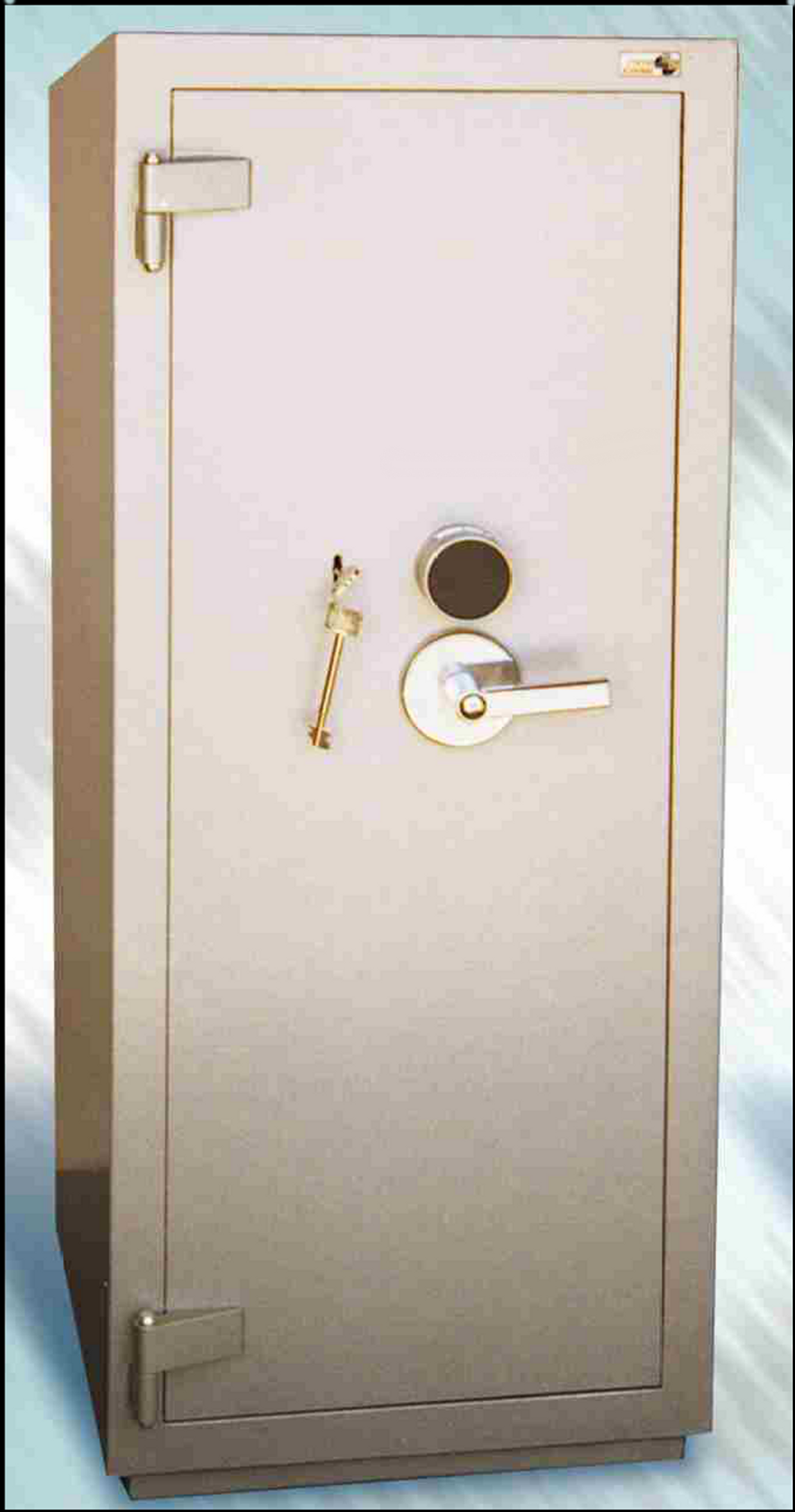 Сейф огнеупорный и противовзломный производства Украина,предназначен для хранения документов, денег, ценных бумаг, оружия и других ценностей.Такой сейф обеспечит защиту от взлома и сохранит содержимое от пожара (расчётная огнестойкость не более 60 минут). Конструктивно изготавливается таким образом: корпус - двустенный из двух листов стали (наружный лист металла 4 мм, внутренний 2 мм) сваренных между собою на расстоянии с заполнением внутренней полости; дверь из трёх листов стали сваренных между собою на расстоянии, наружный лист металла (8 мм), затем специальное заполнение между стенками, затем лист металла (4 мм), затем ригельная система, и затем внутренний лист металла (2 мм).Внутреннее заполнение - «сенгвич»: металл -базальтовое волокно-металл-фанера.Сейф оборудован двумя замками. Для того чтобы откыть сейф необходимо иметь ключ и знать код. Замок 1: фирма/страна производитель: "Mauer" или "STUV" Германия; тип замка: ключевой (сувальдный); тип ключа: 2-х бородковый; количество сувальд 8; количество ригелей - 8; диаметр ригелей - 28 мм; в комплекте два ключа; длина ключа - 120 мм. Замок 2: фирма/страна производитель замка "La Gard" (США): тип замка: кодовый (механический); количество комбинаций 1 000 000; код сменный, состоит из одного двухзначного числа или трёх двухзначных чисел; цвет замка - хром. Направление закрытия ригелей - четырёхстороннее: три горизонтально слева, три горизонтально справа, один вертикально вверх, один вертикально вниз. Для удобства пользования при открытии и закрытии сейфа, на внешней стороне двери установлен поворотный штурвал. Ключ и код фиксируют механизм закрытия (замок открыт/замок закрыт), а штурвал приводит в движение ригельную систему (дверь отрыта/дверь закрыта). Конструкция ригельной системы исключает вскрытие сейфа путём силового воздействия на штурвал. Штурвал из пластика (на металлической основе), угол оборота 90 градусов, цвет - чёрный. Дверь изготовлена таким образом, чтобы максимально защитить замок сейфа и его ригельную систему от взлома - замок и механизм запирания защищены специальной пластиной из марганцевой стали что обеспечивает дополнительную защиту замка от высверливания. Сейф оборудован отдельно запираемым внутренним отделением (трейзер). Месторасположение - внутри в верхней части сейфа. Замок слева, петли справа. Толщина передней панели трейзера 8 мм. Изнутри замок защищён стальным коробом. Замок трейзера: производитель: Италия; тип замка: ключевой (сувальдный); тип ключа: 2-х бородковый; количество ригелей: 2; диаметр ригелей: 18 мм; в комплекте два ключа; длина ключа: 65 мм; направление закрытия ригелей - одностороннее: два горизонтально слева. Наружные мощные петли обеспечивают плавность и легкость хода двери, исключая проседание, и позволяют открыть дверь сейф на 180 градусов. Месторасположение петель - справа.( возможно месторасположение петель – слева). Четырёхстороннее фиксирование двери в закрытом состоянии исключает вскрытие сейфа путём срезания петель. Сейф оборудован 2-мя внутренними съёмными полочками (регулируемые). Толщина металла полочки 2 мм. (Возможна установка дополнительных полочек). Тип покраски - молотковая эмаль или порошковая краска (цвет сейфа может быть подобран индивидуально). Во избежание кражи сейфа с места эксплуатации предусмотрена возможность его крепления (одно отверстие) анк